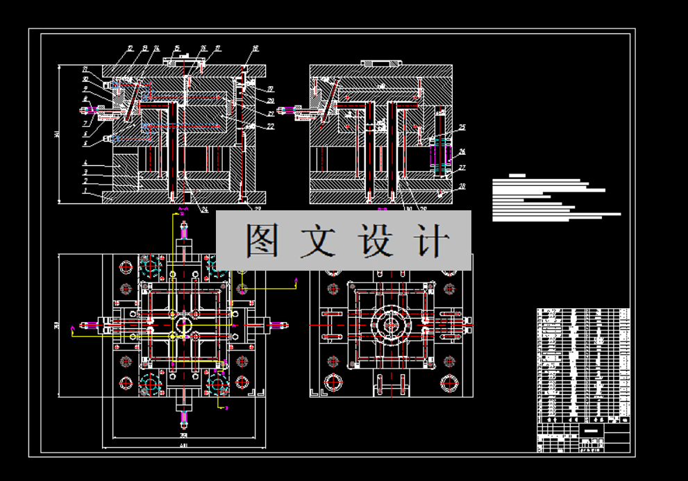 三通接口注塑模具设计,采用一模四腔结构,提高生产效率。侧浇口设计利于塑料流动。斜导柱抽芯机构灵活,便于复杂结构脱模。两板模结构简化操作。整体设计科学,确保三通接口注塑件的高精度与高质量。