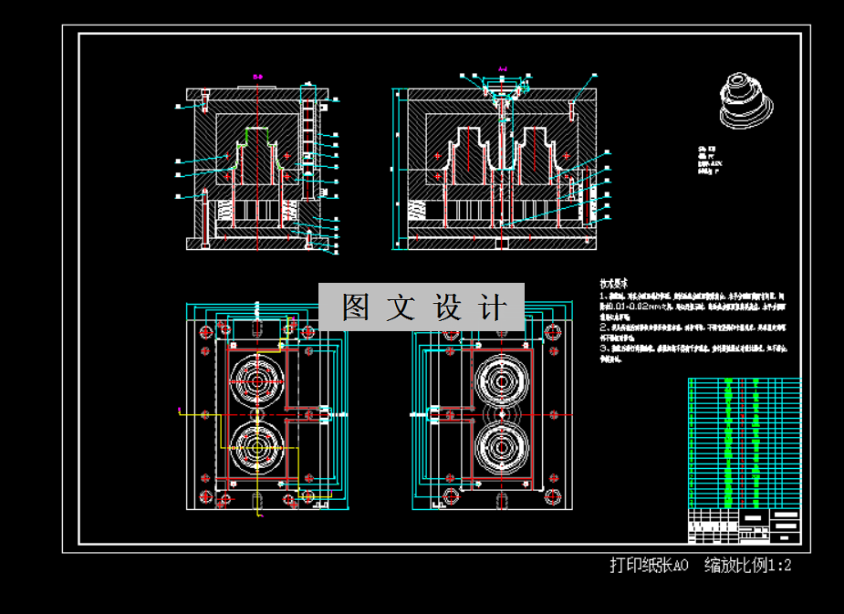 台灯灯罩注塑模具设计,一模两腔布局提升生产效率,侧浇口设计优化塑料填充,推杆顶出机构确保制品顺利脱模,