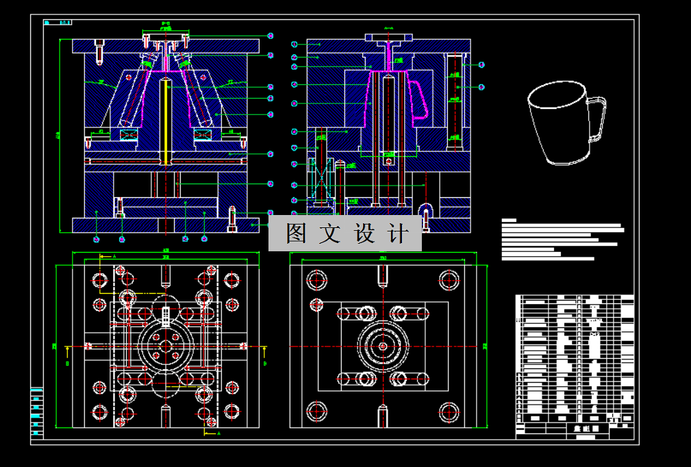 塑料水杯注塑模具设计,采用一模一腔确保制品精度,直浇口利于塑料快速填充,哈佛结构实现动模与定模的精确分型,整体设计稳定可靠,满足塑料水杯注塑生产的高品质要求,确保产品外观精美、性能优越。
