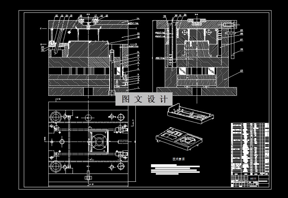 收音机面壳注塑模具设计,一模两腔提高生产效率,采用侧浇口便于塑料熔体流入,推杆顶出确保成品顺利脱模,一次分型简化操作流程,斜导柱抽芯结构实现侧向抽芯,确保模具稳定性和产品质量。整体设计综合考虑了生产效率和产品质量。