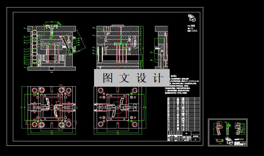 扫帚把注塑模具设计,采用一模两腔结构,点浇口进料,三板模多次分型设计。脱模机构选用推杆顶出,确保产品顺利脱模。模流分析优化注塑过程,提高产品质量和生产效率。整个设计充分利用ProE软件的强大功能,确保模具结构合理,注塑过程稳定。