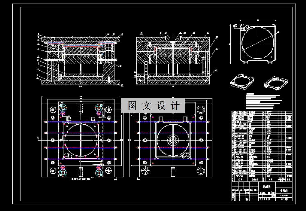 风扇面壳注塑模具设计,一模一腔布局,采用推杆顶出机构,侧浇口进料,两板模结构。该设计确保注塑过程稳定,脱模顺畅,适合大批量生产。同时,模具设计合理,能有效保证塑件质量,提高生产效率。