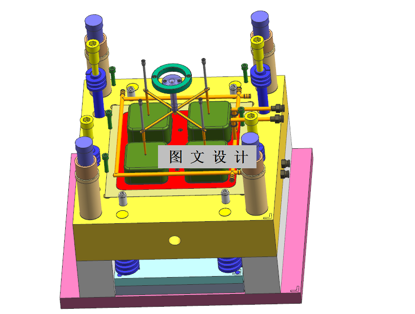 饭盒方形注塑模具设计采用一模四腔结构,三板模点浇口设计,实现高效生产。模具采用多次分型技术,确保塑料填充均匀,减少废料。推杆顶出机构使产品脱模顺畅,保证产品质量。整体设计合理,制造精度高,适用于大规模自动化生产,满足饭盒等塑料制品的高效率、高精度生产需求。