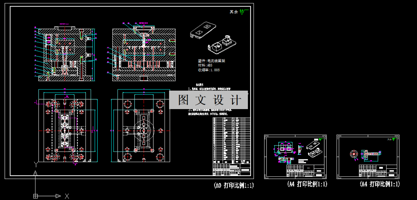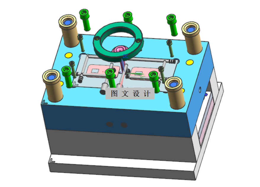 电流线圈架注射模具设计,一模2腔,采用侧浇口进浇,推杆顶出系统确保塑件平稳顶出,斜导柱滑块抽芯机构实现模具的垂直分型面开模和抽芯动作。设计需考虑模具刚性、流道平衡及热流道系统制造方便性,确保塑件质量一致稳定。