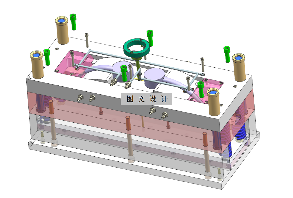 弯弧淋浴喷头塑料模具设计,采用一模两腔结构以提升生产效率。模具设有侧浇口,确保塑料流畅注入。弯弧部分采用抽芯设计,完美成型复杂曲面。整体结构设计合理,确保模具运行稳定,产品精度高。此模具设计能有效满足弯弧淋浴喷头的生产需求,提升产品品质与生产效率。
