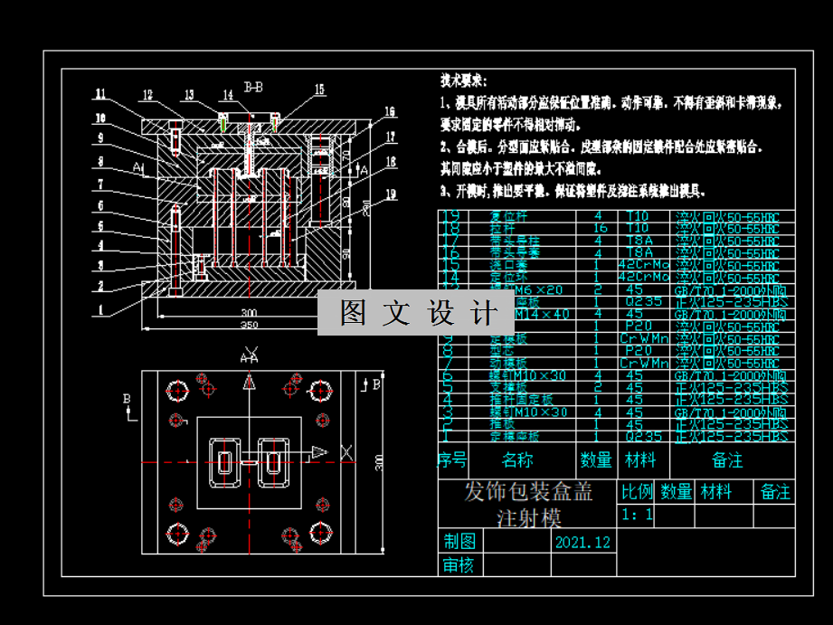 这是一个塑件制品,从二维方面进行解析,本次除了使用CAD二维绘图软件对本发饰包装盒盖塑料件进行二维软件绘图外,还对发饰包装盒盖塑料件的原始结构进行了分析,通过分析我们可以知道这个塑件内部结构及塑件外形相对比较复杂,通过分板可以看出发饰包装盒盖塑件的整体形状是呈现壳体的,而且壁厚平均分布相对合理。在深思熟虑的考虑了模具尺寸大小与生产效益等各个方面的因素后,最终本次设计拟定型腔分布方式方面采用一模两腔的型腔分布方式,至于浇注方式则拟定采用了侧浇口进料的两板模方式。注塑模具是一种新型生产工业经常采用的生产工具,它以特定的型芯、型芯等结构形式构成了注塑模,使得塑胶原料成型。综合比较各种参数才综合选出一个最符合塑件制造的最合理的方案。本次模具设计的工作还在于将运用CAD制图软件把模具装配图绘制出了CAD电子图档。在计算机的辅助下对塑件的各机构及模架进行了设计绘画,另外在绘制零件图时还需要考虑到零件的制造工艺,保证零件强度足够,易加工,便捷更换。以上因素在设计过程中都需要综合考虑。