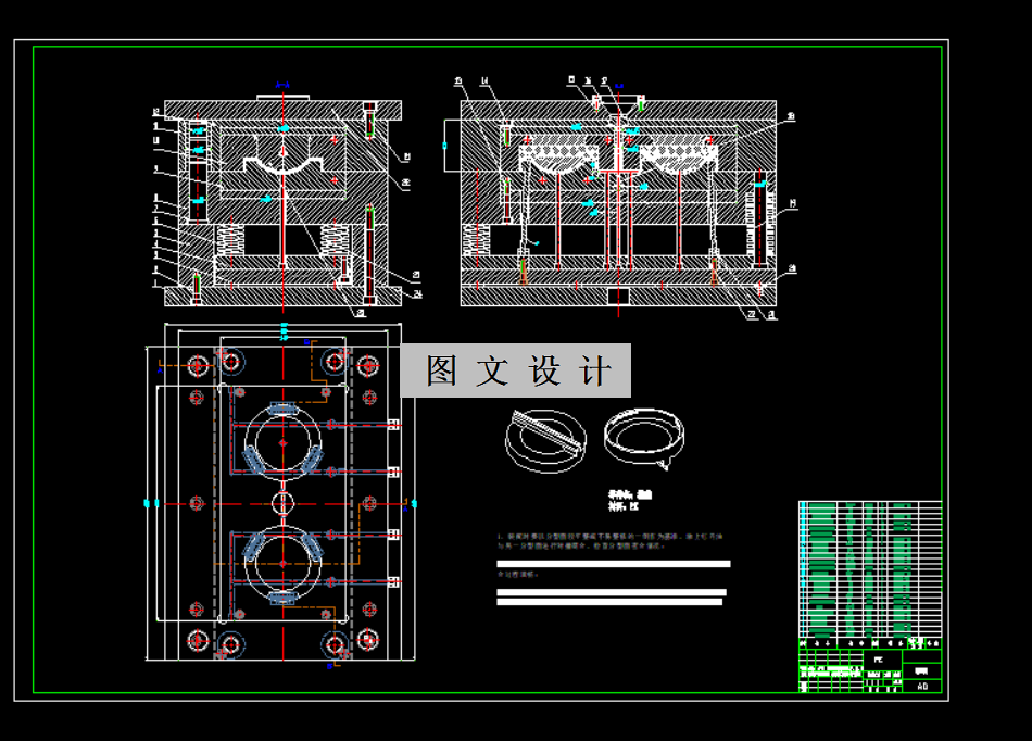 本次设计主要根据任务书所给的注塑零件盖来进行模具的设计,自主选择的研究产品是桶盖,先利用UG及CAD对桶盖进行3D建模,然后根据相应的参数对应选择注射机的型号,并对塑料制品的模架结构进行了设计,对模具参数进行校核,完成了浇注系统和型腔排布的设计,同时还完成了装配图和零件图的设计。在检验过程中需要仔细核对细节,避免发生模具设计不合理、零件干涉等错误的发生。由于塑件的工艺性能要求注塑模中有冷却系统,因此在模具设计中也进行了设计。本次的设计中不仅参考了大量纸质文献,而且在互联网上查阅资料,设计过程比较完整。