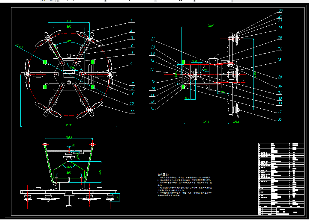 本次设计主要完成了农业施肥无人机的资料的收集,结构的设计和校核,并且对无人机的重要结构螺旋桨方面进行了分析和校核,对动力系统进行了简单的分析,本次设计完整的对农业施肥无人机进行了设计。