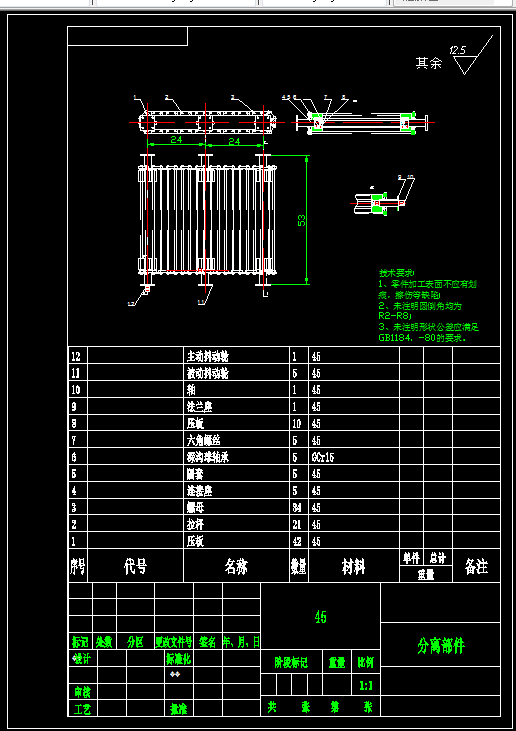cad出部分零件图以及主要设计机构的装配图,