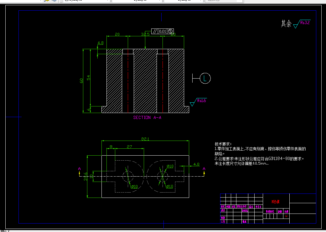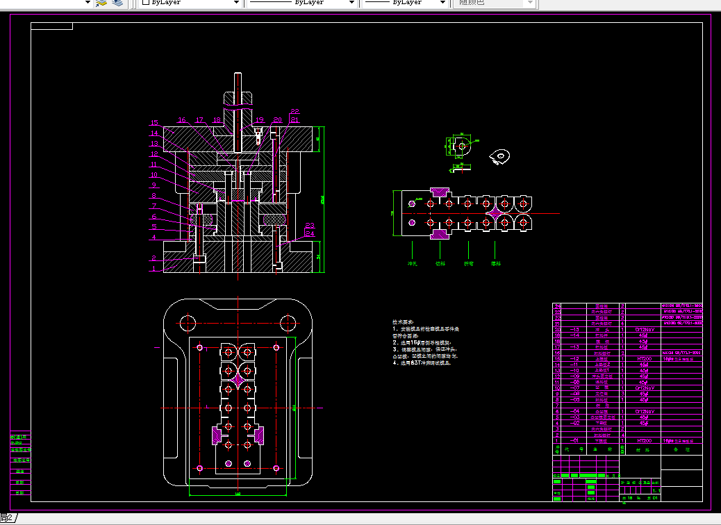 摘要:本次设计了一套复合模。经过查阅资料,首先对零件进行工艺的分析,经过工艺分析与对比,又采用了冲孔落料工序,通过顶件力、冲裁力、卸料力等计算,确定压力机的型号。再分析模具--冲压件加工的适用类型选择所需设计的模具。得出将要设计模具类型后,将模具的各工作零部件设计过程表达出来。在文档中第一部分,主要叙述了冲压模具的发展状况,详细的说明了冲压模具的重要性与本次设计的意义;接着是对冲压件的工艺分析,完成了工艺方案的方向与目的。第二部分,对零件排样图的设计,完成了材料利用率的计算。再进行冲裁工艺力的计算和冲裁模工作部分的设计计算,对选择冲压设备提供依据。最后对主要零部件的设计和标准件的选择作出最后确定。为本次设计模具的绘制和成形提供依据,以及为装配图各尺寸提供依据。通过前面的设计方案画出模具各零件图和装配图。本次设计完成冲模分析与设计,绘制整套装配图及零件图。本模具性能可靠,运行平稳,提高了产品质量和生产效率,降低劳动强度和生产成本