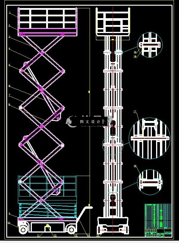 双铰接升降台的设计是在原有剪叉式的基础上,参考目前应用的灵活性,安全性,经济性等指标;以满足货物举升需要更高的要求为前提而设计的,通过不同型号和响应实现满足物流运输方面的性能要求。 通过对双铰接剪叉升降机位置参数和动力参数的技术,结合具体实例,对两种液压缸布置机制的比较分析,并根据液压传动系统的设计和最后的液压致动器,计算各部分的要求,液压缸,通过确定负荷板和叉臂的分析,最终完成剪叉式液压升降平台的设计要求 相关工艺参数为:额定载荷:500kg 工作台尺寸1750×1000 净升高度5m 那个要能移动的 就是带个轮子能走的那种