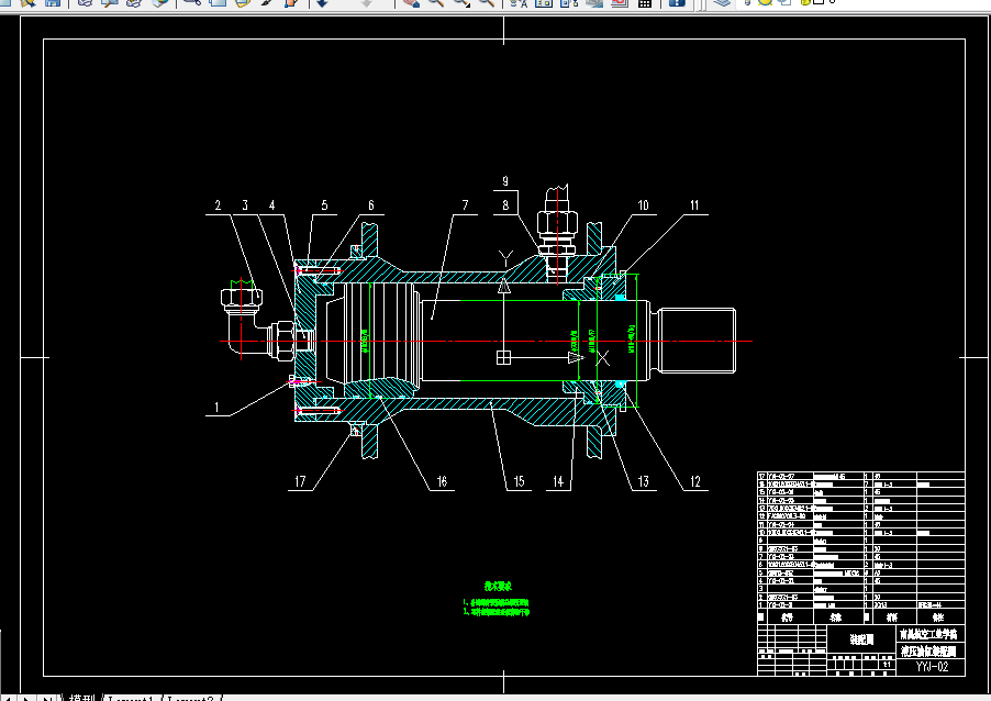 在单柱液压机液压系统执行元件液压缸的设计中,利用在前文系统设计中所校核过的如活塞直径D(ΦAL)、活塞杆直径d(ΦMM)等参数,我们对液压油缸的各主要零部件进行了详细的结构设计,并绘制了它们的零件图及液压油缸装配图。 在本设计中,所有图纸均使用绘图软件CAXA(电子图板V2版)绘制而成,使得图纸更加清晰,一目了然。