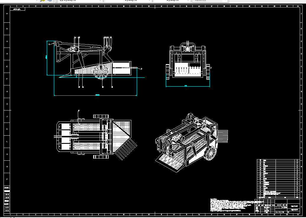 设计了一款基于振动筛的花生收割机,涵盖了其整体架构、工作原理、技术特性以及核心部件的设计。该机器主要包括挖掘铲、振动筛、行走轮、动力传输系统和机身,适用于11至13.2千瓦的拖拉机,能一次性完成两行花生的收割。挖掘出的花生植株会被送上传送至振动筛,通过振动筛的震动来清除花生上的泥土,最终利用输送板实现花生植株向一侧倾斜的目标。该设备的特点在于操作流畅、稳定性强、清洁度高、损耗小,每小时可完成0.1公顷的纯生产。