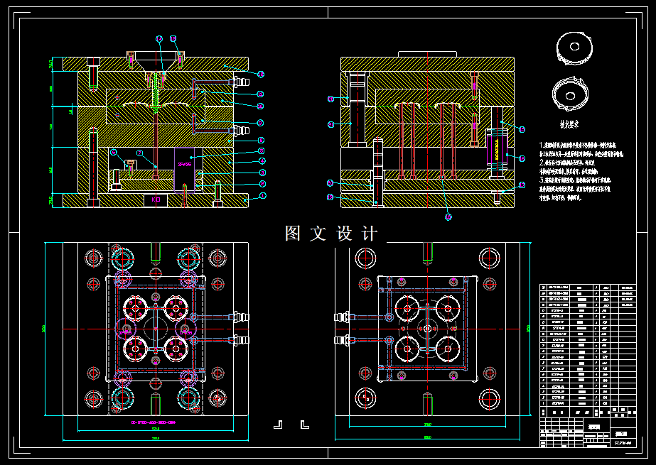 本文论述的014防尘罩注塑模具采用两板式结构,即浇注系统凝料和制件在不同的分型面脱出,采用一模四腔的型腔布置,最后利用推杆将制件推出。欢迎下载学习