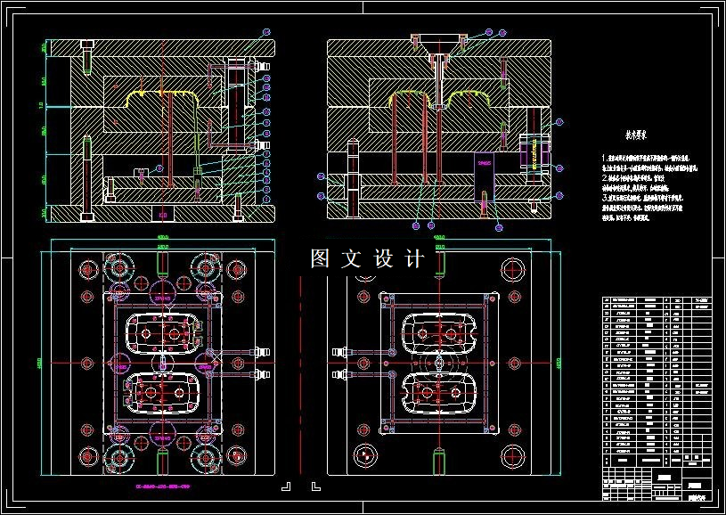 本次设计的产品为塑料壳体,具有重量轻,强度高,耐腐蚀,易清洁等 特点,为大批量生产产品。本次设计在针对产品进行工艺性分析后,确定模具分 型面、 型腔数目、 浇口形式、 位置大小; 其中最重要的是确定型芯和型腔的结构, 以及它们的定位和紧固方式。此外还进行了脱模机构的设计,合模导向机构的设 计,冷却系统的设计等。