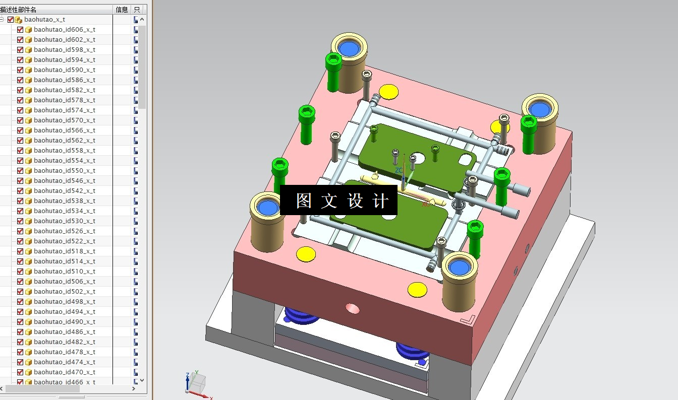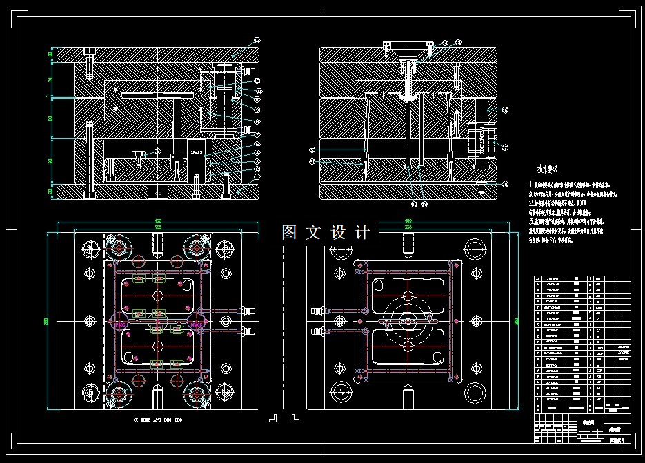 本次设计的产品为手机保护盖,具有重量轻,强度高,耐腐蚀,易清洁等 特点,为大批量生产产品。本次设计在针对产品进行工艺性分析后,确定模具分 型面、 型腔数目、 浇口形式、 位置大小; 其中最重要的是确定型芯和型腔的结构, 以及它们的定位和紧固方式。此外还进行了脱模机构的设计,合模导向机构的设 计,冷却系统的设计等。最后绘制完整的模具装配总图和主要的模具零件图及编 制成型零部件的制造加工工艺过程卡片。实践证明:该模具结构合理、可靠,并 能保证产品质量,对此类注塑产品的模具设计有参考价值。