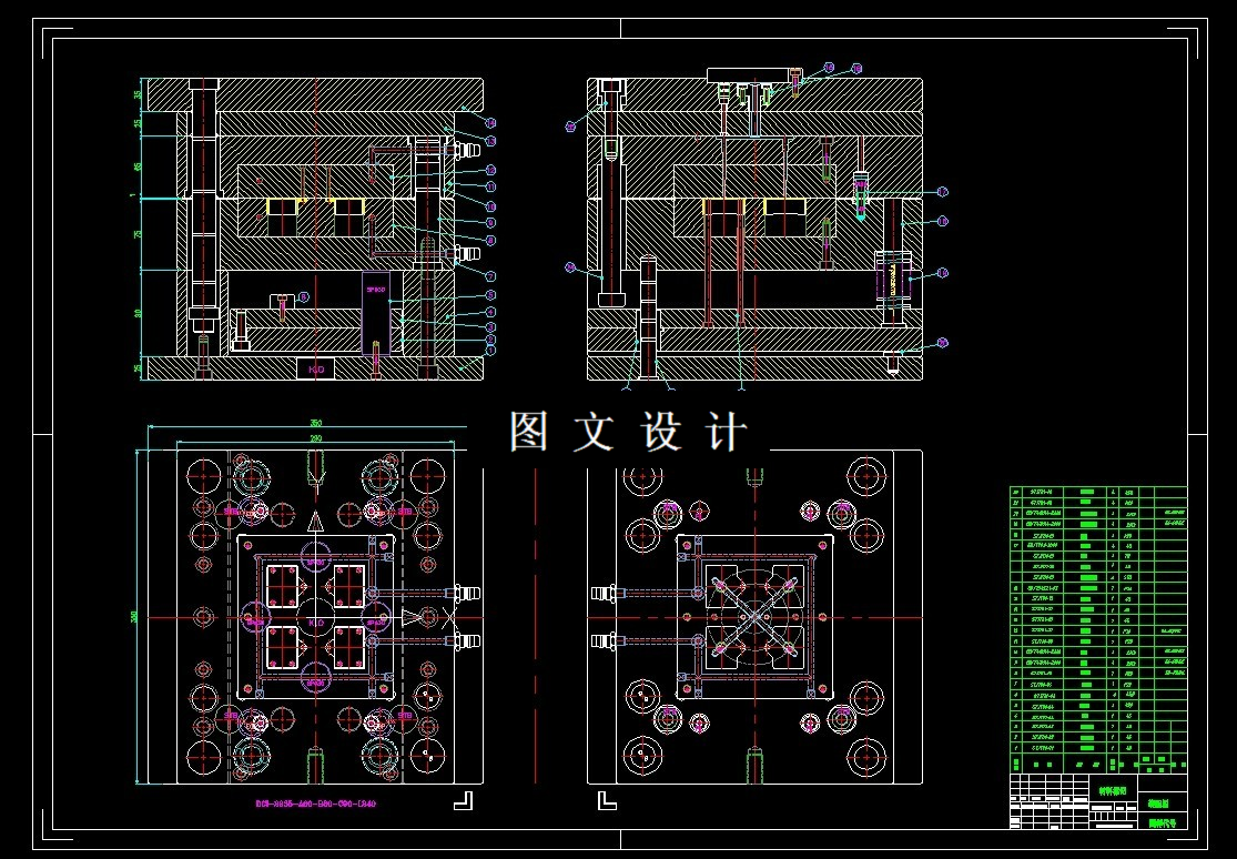 塑料外壳注塑模具设计-一模四腔,本次毕业设计的题目是:外壳的塑件注射模。本次设计主要是通过对塑件的形状、尺寸及其精度的要求来进行注射成型工艺的可行性分析。塑件的成型工艺性主要包括塑件的壁厚,斜度和圆角以及是否有抽芯机构。通过以上的分析来确定模具分型面、型腔数目、浇口形式、位置大小;其中最重要的是确定型芯和型腔的结构,例如是采用整体式还是镶拼式,以及它们的定位和固紧方式。此外还分析了模具受力,脱模机构的设计,合模导向机构的设计,冷却系统的设计等。最后绘制完整的具装配总图和主要的模具零件土及编制成型零部件的制造加工工艺过程卡片。