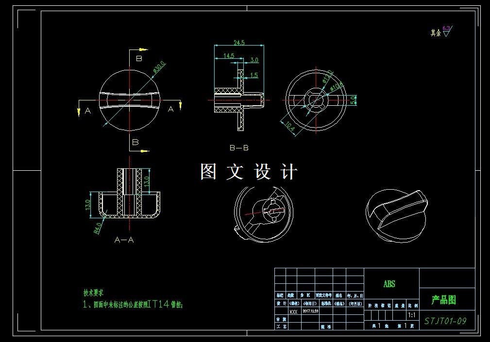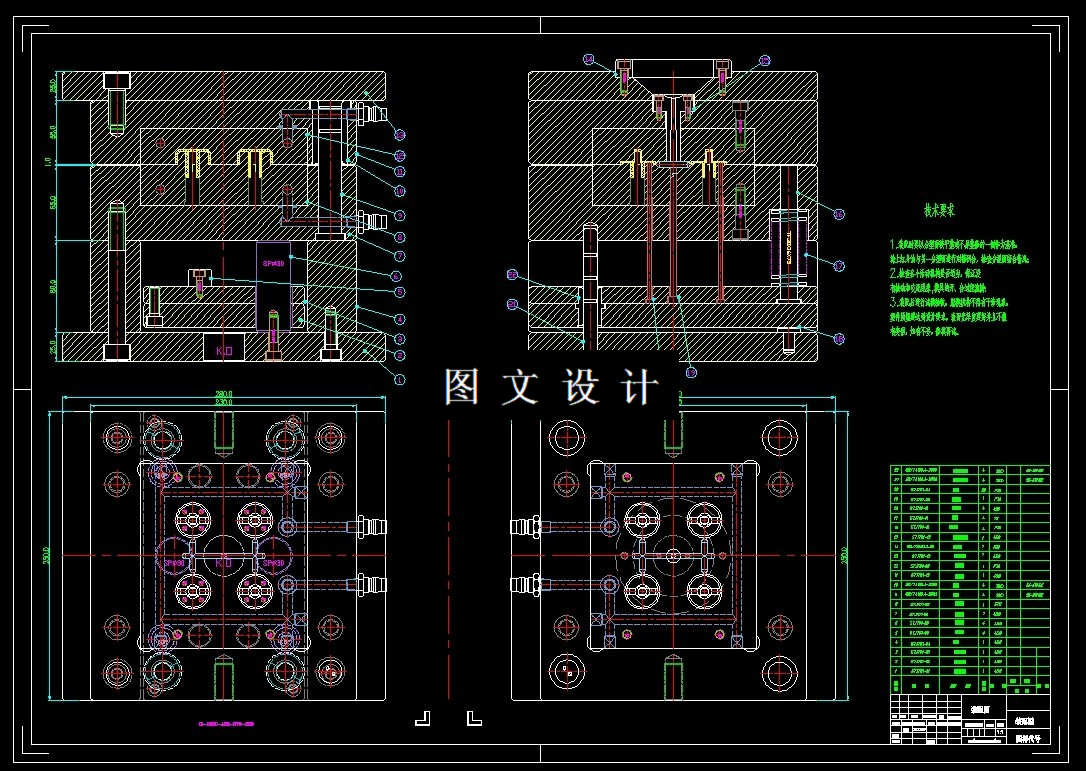 风扇旋钮注塑模具设计-一模四腔设计方案 本文主要介绍的是旋钮注塑模具的设计方法。首先分析了旋钮制件的工艺特点,包括材料性能、成型特性与条件、结构工艺性等,并选择了成型设备。接着介绍了旋钮注塑模的分型面的选择、型腔数目的确定及布置,重点介绍了浇注系统、成型零件、合模导向机构、脱模机构、定距分型机构以及冷却系统的设计。然后选择标准模架和模具材料,并对注射机的工艺参数进行相关校核。最后对模具的工作原理进行阐述,以及在安装调试过程中可能出现的问题进行总结、分析,并给出了相应的解决方法。