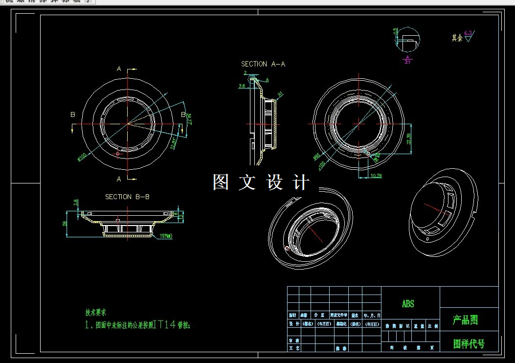 烟雾报警器盖-外壳注塑成型模具设计-一模两腔设计方案 本次设计在针对产品进行工艺性分析后,确定模具分 型面、 型腔数目、 浇口形式、 位置大小; 其中最重要的是确定型芯和型腔的结构, 以及它们的定位和紧固方式。此外还进行了脱模机构的设计,合模导向机构的设 计,冷却系统的设计等。最后绘制完整的模具装配总图和主要的模具零件图及编 制成型零部件的制造加工工艺过程卡片。实践证明:该模具结构合理、可靠,并 能保证产品质量,对此类注塑产品的模具设计有参考价值。