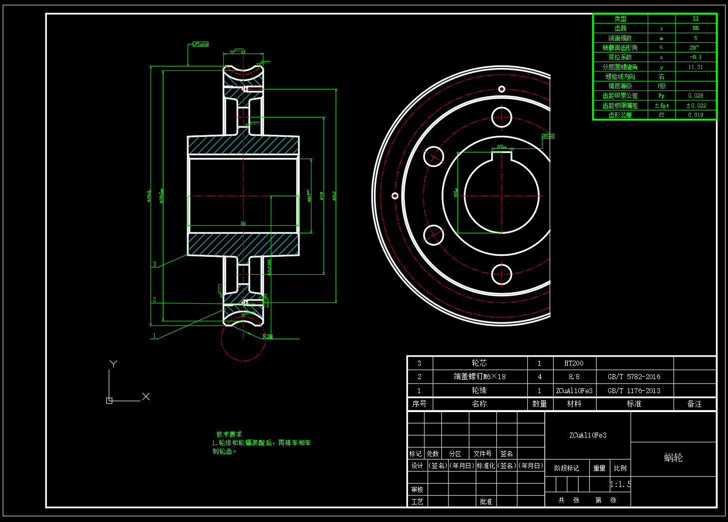 吊车传动系统设计,包含减速器总装配图设计,高速轴和低速轴转矩图设计,低速轴设计,减速器草图设计,涡轮设计,码头吊车减速器的设计计算说明书等。