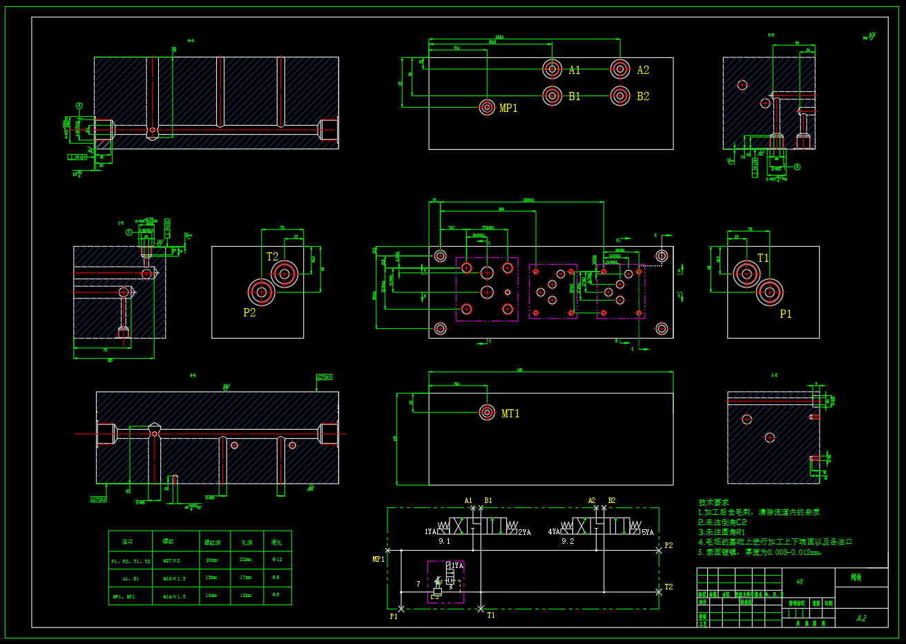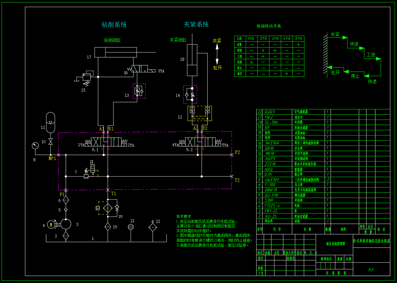 卧式单面多轴钻孔组合机床液压系统,液压系统原理图,油缸装配图,泵站装配图,阀块零件图,速度和负载图,液压缸工况图,缸体,活塞二维CAD图,设计计算书。