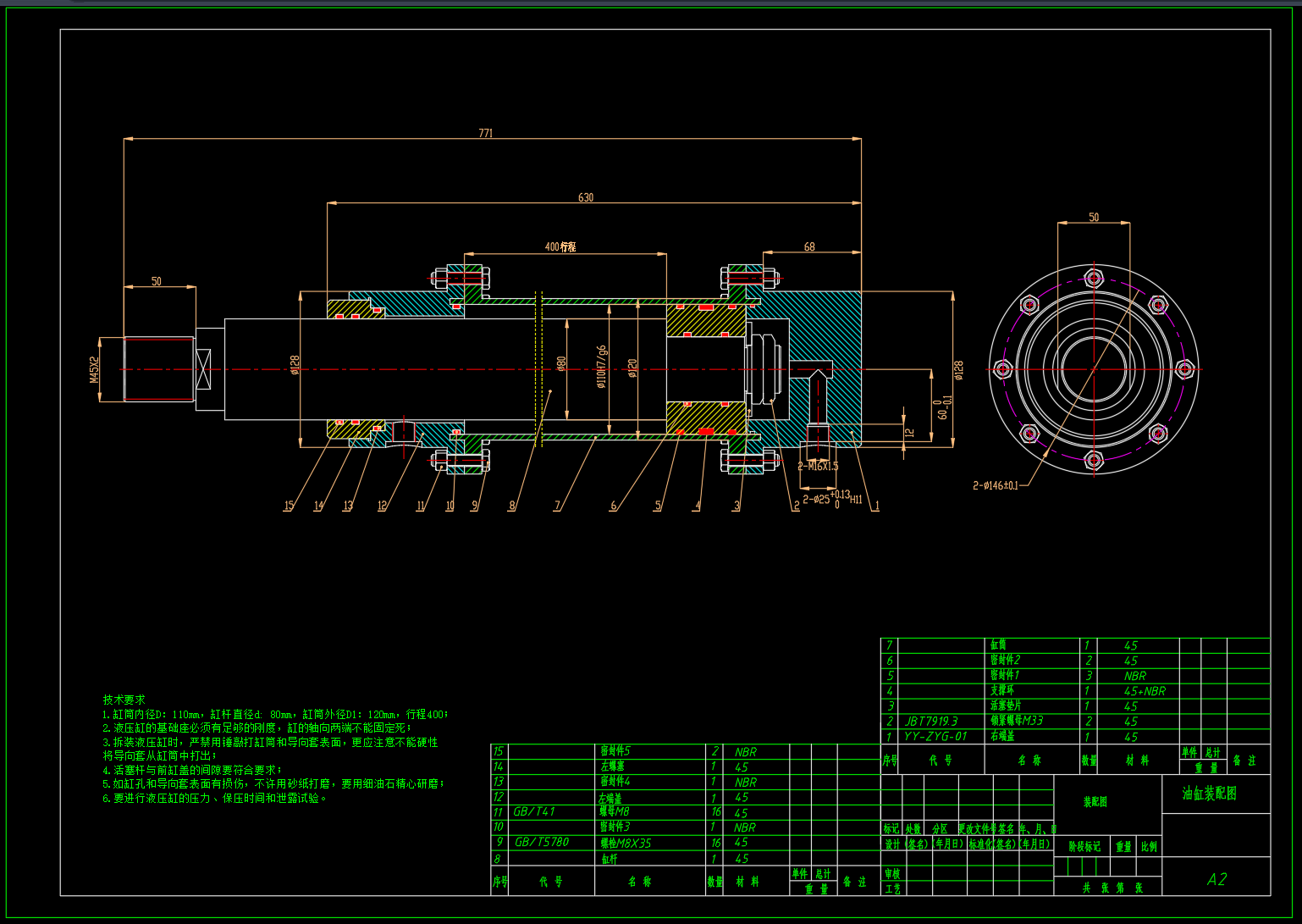 油缸装配图,缸杆,缸筒,活塞零件图,包含负载和速度图,液压缸工况图,包含设计计算书。