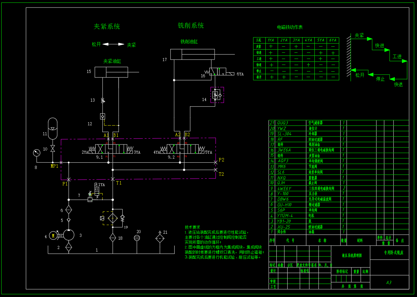 专用卧式铣床液压系统设计,包含油缸的SW2016所有零部件建模装配,包含二维图纸液压系统原理图,