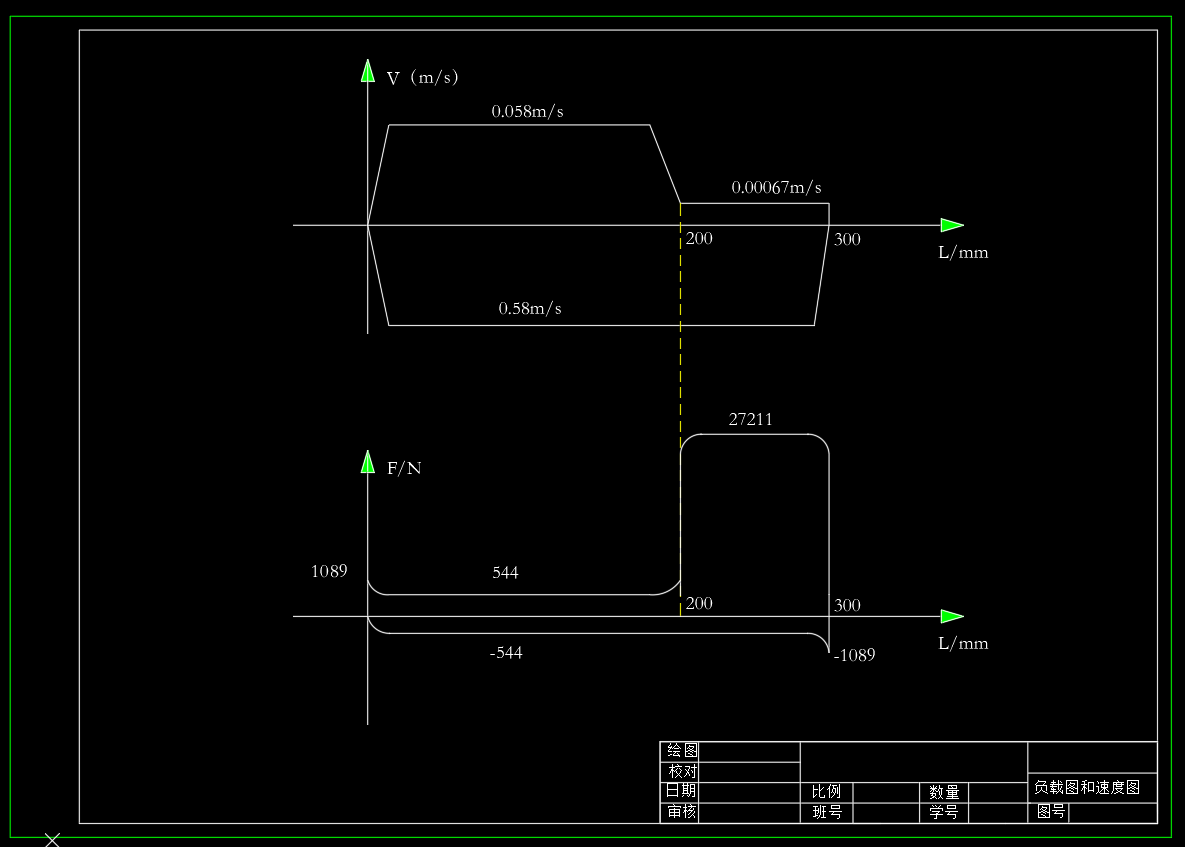 工业夹紧机构液压系统,包含液压系统原理图,负载图和速度图,液压缸工况图,设计计算书。 (1)夹紧机构实现功能:快进——工进夹紧——快退——停止的工作循环 (2)基本参数设定:夹紧负载力24000N,夹紧滑台移动部件500kg,即,工作台启动时间(加减速时间)0.2:,采用平导轨,静摩擦系数0.2,导轨面动摩擦系数0.1,工作台快进行程200,工进行程100,快进与快退速度相等,均为3.5m/min,工作台工进夹紧速度为0.00067m/s,导轨面的液压缸机械效率为0.9。