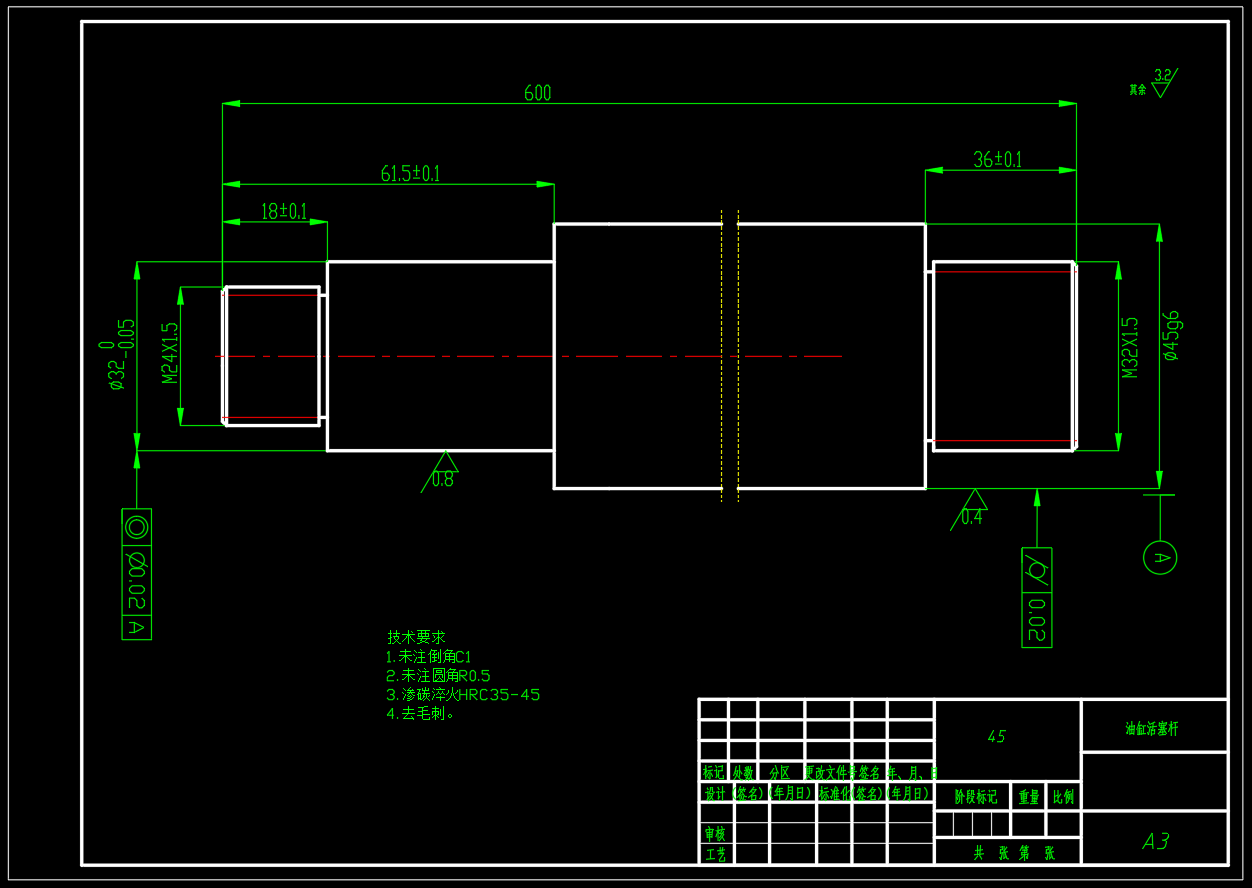 叉车倾斜液压缸设计,包含油缸二维CAD总装配图,活塞杆零件图,设计计算书。 基本参数: 本文设计一种CPJD1.0叉车倾斜液压缸,具体参数如下: 工作最大负载阻力F:15000N 系统压力P:8MPa 油缸行程L:400mm 系统流量:25L/min 移动速度:20mm/s