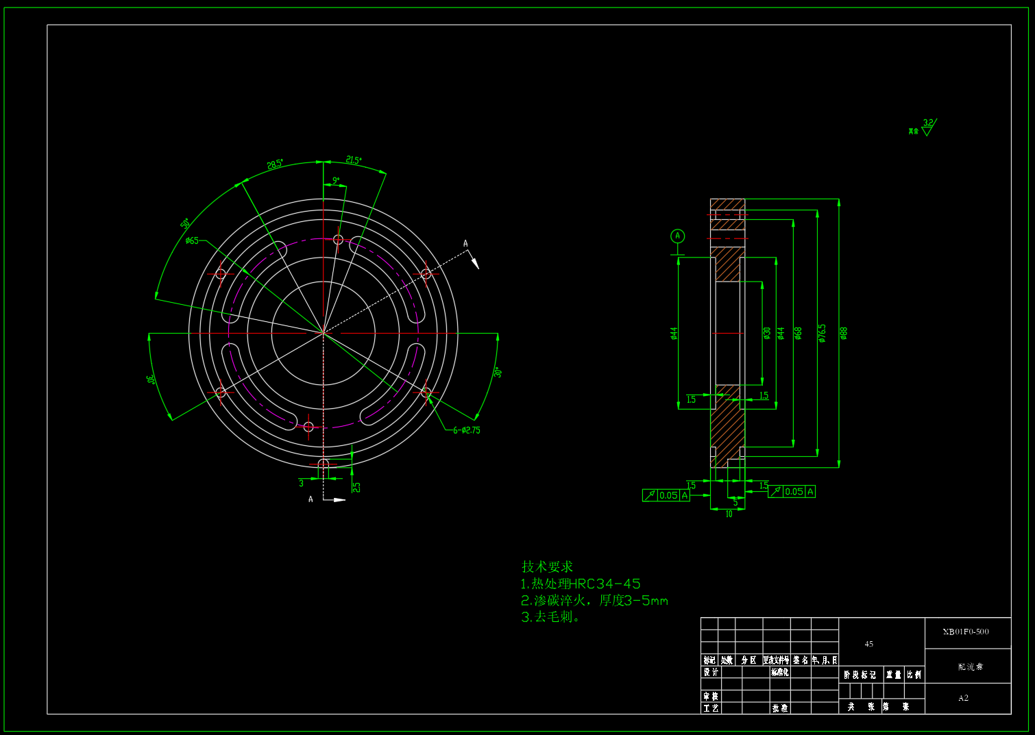 XB01FO-500轴向柱塞定量马达,包含二维图CAD总装配图,缸体,配流盘,柱塞,包含设计计算书。 基本参数: 额定压力:35MPa 额定转速:n=1320r/min 额定排量:500mL/r 最大扭矩:2785N.m 类型:XB01F0-500系列轴向柱塞定量马达