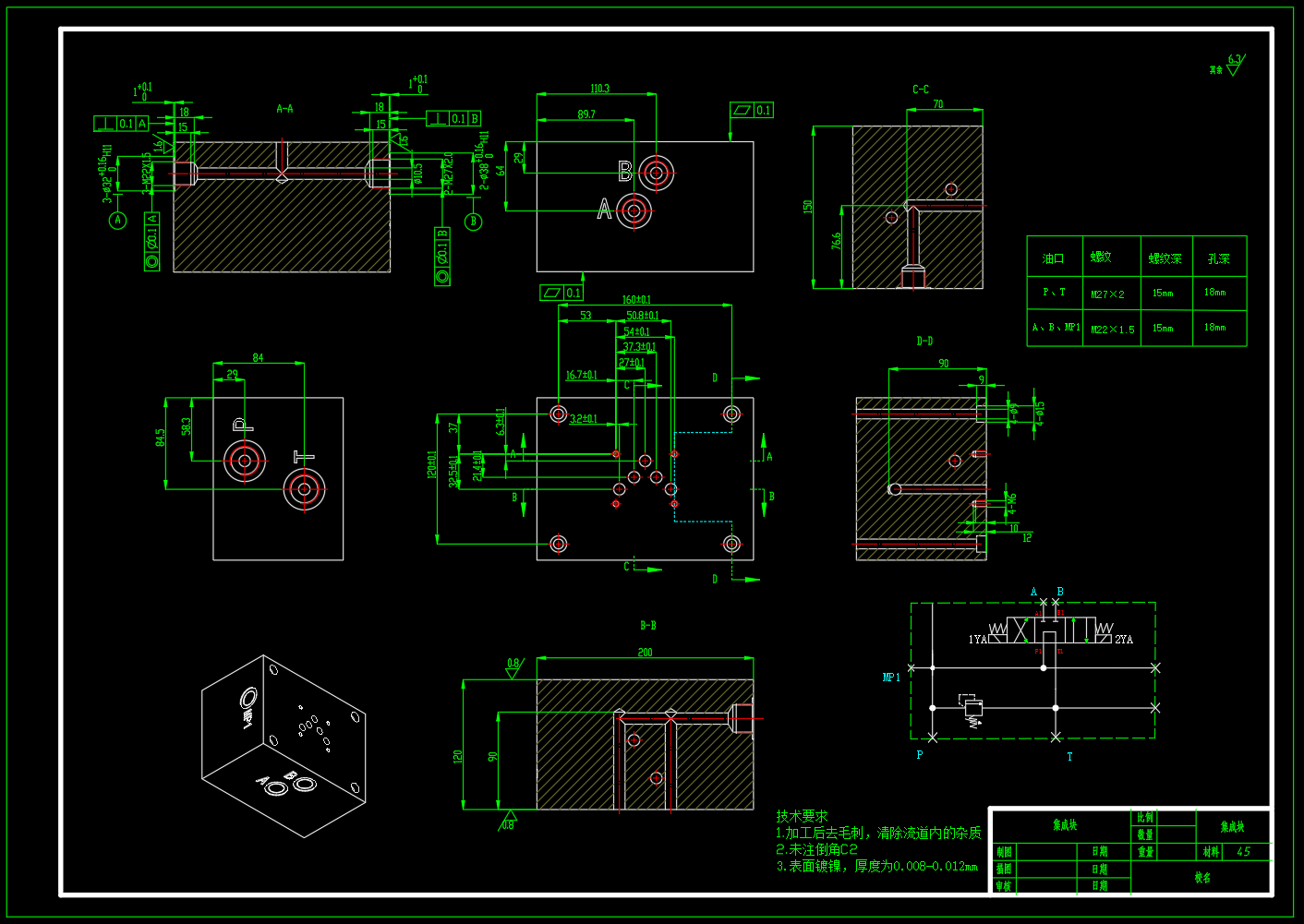 液压动力站设计,参数为:系统压力6MPa,系统流量80L/Min,包含泵站二维总装配图,阀块零件图,液压系统原理图,油箱焊合图,钟形罩二维图,设计计算书等。