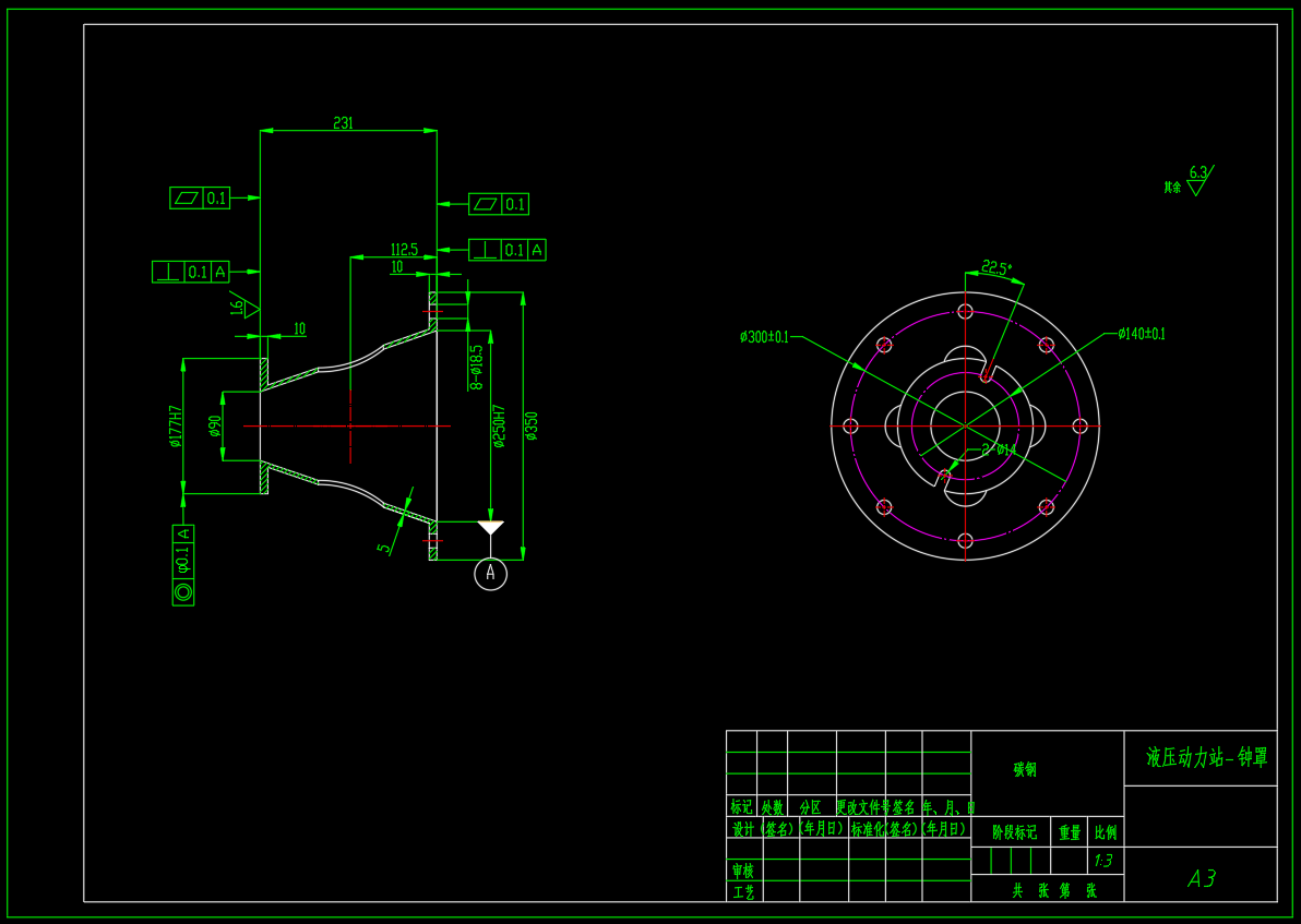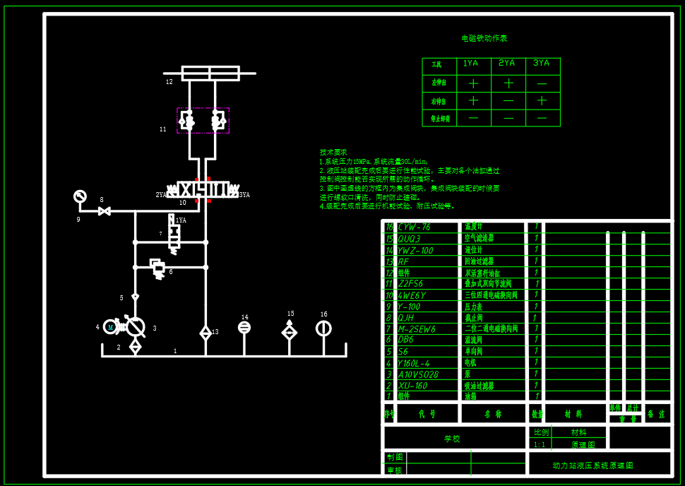 液压动力站设计,参数为:系统压力15MPa,系统流量30L/Min,包含泵站二维总装配图,阀块零件图,液压系统原理图,油箱焊合图,钟形罩二维图,设计计算书等。