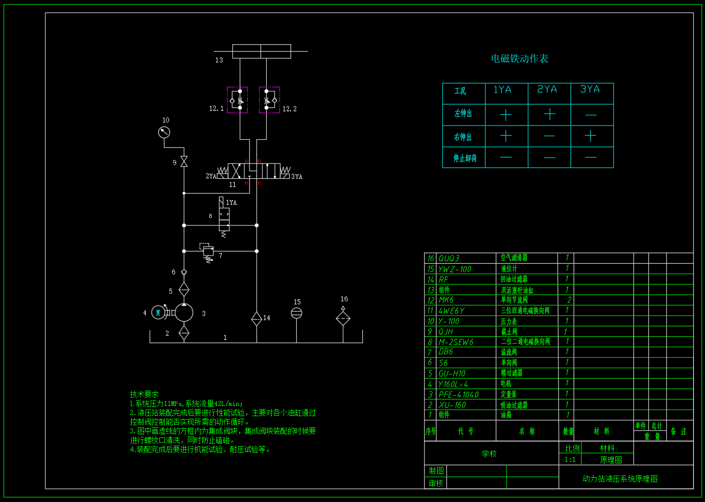 液压动力站设计,包含液压系统原理图设计,阀块设计,油箱焊合设计,钟形罩设计,设计计算书等,参数为:系统压力为11MPa,系统流量为42L/min。