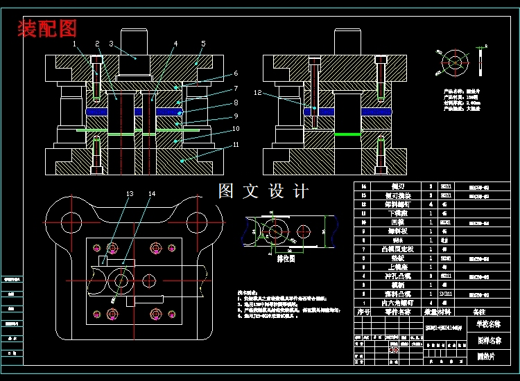 先分析零件的冲压工艺;确定模具的总体结构;结合零件的冲压工艺及模具的总体结构设计排样图;根据排样图,计算利用率、冲载力、压力、选用设备及刃口的尺寸。根据资料再用AutoCAD,对模具进行设计,然后绘出装配图和零件图进行标注359441