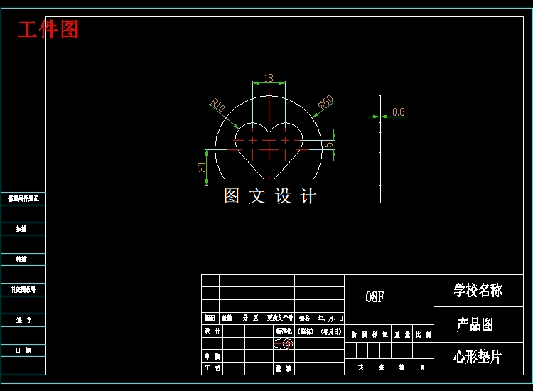 通过对深入学习,对此零部件模具设计时的设计方式有了雏形。先分析零件的冲压工艺;确定模具的总体结构;结合零件的冲压工艺及模具的总体结构设计排样图;根据排样图,计算利用率、冲载力、压力、选用设备及刃口的尺寸。根据资料再用AutoCAD,对模具进行设计,然后绘出装配图和零件图进行标注,并编制零件的加工工艺卡,使理论和生产实际知识综合运用,从而培养和提高了我独立工作的能力。