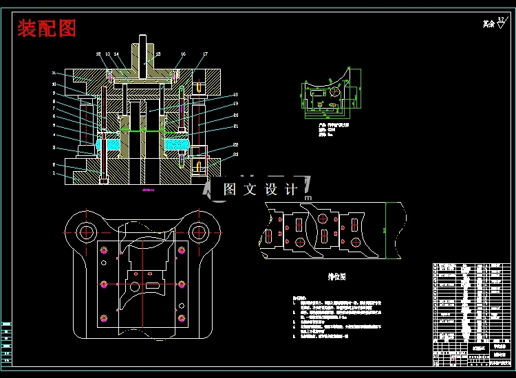 通过对深入学习,对此零部件模具设计时的设计方式有了雏形。先分析零件的冲压工艺;确定模具的总体结构;结合零件的冲压工艺及模具的总体结构设计排样图;根据排样图,计算利用率、冲载力、压力、选用设备及刃口的尺寸。根据资料再用AutoCAD,对模具进行设计,然后绘出装配图和零件图进行标注,并编制零件的加工工艺卡,使理论和生产实际知识综合运用,从而培养和提高了我独立工作的能力。