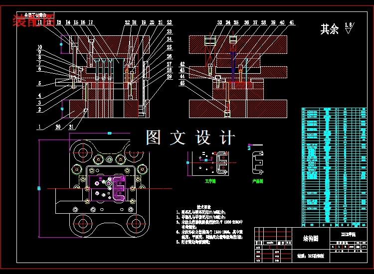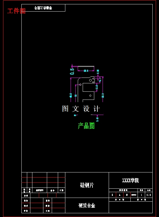 先分析零件的冲压工艺;确定模具的总体结构;结合零件的冲压工艺及模具的总体结构设计排样图;根据排样图,计算利用率、冲载力、压力、选用设备及刃口的尺寸。根据资料再用AutoCAD,对模具进行设计,然后绘出装配图和零件图进行标注