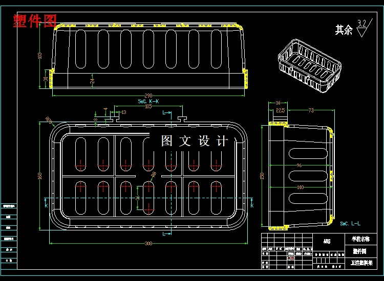 20世纪塑料材料的制品如雨后春笋一样涌现,当然这样的兴起是因为它本身的特点,包括有价格低廉、易塑型、强度大等等。就现在来说,塑料制品已经在很多的方面得到了应用,诸如日常的生活、医疗所使用的设备、电子电器制品方面、汽车内部设备等。 塑料制品有很多种成型的方法,本设计使用的是最常使用的注塑方式——注射成型,进行卫浴塑料架注塑模模具设计。 本设计的模具设计对象为卫浴塑料架,前期对于设计对象进行了相关的测量,数据的记录等;中期主要是使用UG三维设计软件根据前期测量的数据建立立体模型,并在塑件模型的基础上利用UG制造内的模具型腔模块对卫浴塑料架作出相应的注塑模模具设计,包括有塑件元件、滑块分型面、主分型面、浇口等,并且加入相应的模架、浇口、流道等;后期则是以之前作出的成果为基础使用CAD软件绘制出相应的二维图,也就是工程图,更加清晰的显示出塑件的结构以及模具的机构。