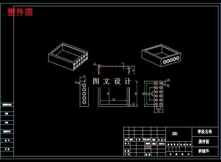 塑料工业是当今世界上增长最快的工业门类之一,而注塑模具是其中发展较快的种类。因此研究注塑模具对了解塑料产品的生产过程和提高产品质量有很大意义。 本设计介绍了注射成型的基本原理,特别是侧向分型与抽芯机构的结构与工作原理,并对注塑产品提出了基本的设计原则。详细介绍了注射模具的材料及工艺分析,浇注系统、主要零部件、侧向分型与抽芯机构、推出机构、温度调节系统和排气系统的设计过程,并对模具各参数选取和校核做相应说明。