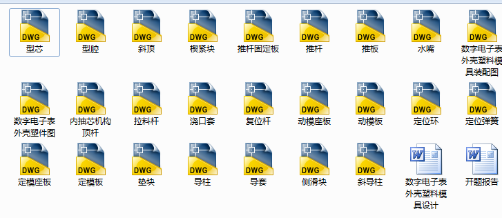 关键词 数字电子表外壳,注塑模,外侧抽芯,内侧抽芯
