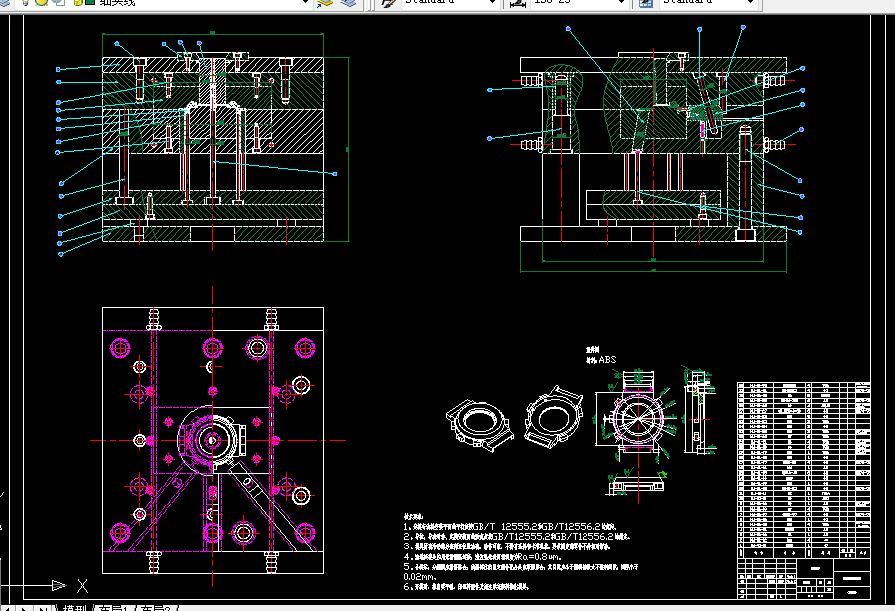 本文首先分析了塑料模具的发展趋势,重点介绍了外侧抽芯结构和内侧抽芯机构。然后分析数字电子表壳塑件的结构特点,介绍了电子表壳体注射模结构的设计方法、尺寸要求及模具的工作过程,以及模具设计的具体步骤和过程,CAD在模具设计中的运用大大提高了我们的设计效率,可以在一定程度上使我们摆脱了一些繁琐的绘图与计算工作,更专注于整体的设计。并且对各个设计过程做了必要的理论说明,分析和阐述了模具零件的选材、强度和刚度的校核,电子表外壳的外侧孔采用斜导柱和斜滑块抽芯的设计方法,内凹坑采用三块式内侧抽芯机构,以及脱模机构和冷却系统的设计。