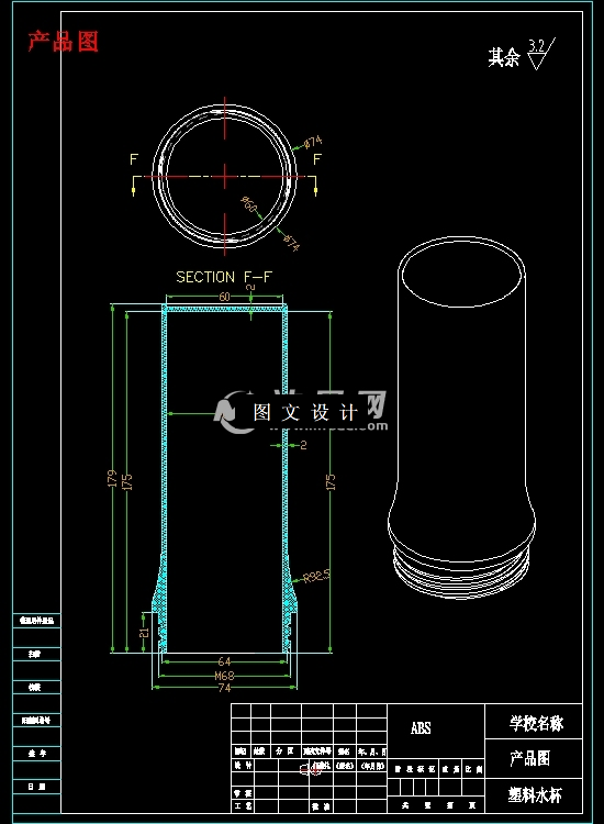 当前饮水杯注塑成型工艺方法很多,为了进一步提高生产效率,节约生产成本,本文在现有的注塑成型工艺冷却方面做了进一步改进,选择在型芯上开设冷却水道,希望缩短冷却过程,从而提高生产效率。 本文主要介绍了经过优化型芯冷却系统后的饮水杯注塑模设计、塑料成形工艺以及注塑的过程,也对注塑机也进行了一些简单的介绍。主要设计过程有:塑料制品的工艺分析,型腔数目的确定,型芯冷却系统的设计,注塑机的选择以及模具的结构设计。本文设计的是一模两腔三板式模具,由于饮水杯的特殊形状,无法直接脱模,需设置侧面分型机构,本套模具是通过斜导柱进行侧面分型,本文对模具的各部分零件进行了设计与计算。在完成了一系列计算和构想之后,利用UG6.0画出注件的三维图,并设计好浇注系统、开模方向,然后进行开模仿真,在确定无误之后,利用EMX7.0设计模架,在完成模架设计之后,利用装配方法把整套模具完成整体设计并导出总装配图和爆炸图。 通过采用组合式型芯,并在型芯块上设计螺旋状冷却水道的冷却系统措施后,注塑过程中注件得到了良好的散热,提高了注件生产效率。在现有的工艺上做了改善之后,饮水杯的注塑过程大大缩短,既提高了生产效率,同时也节约了生产成本。