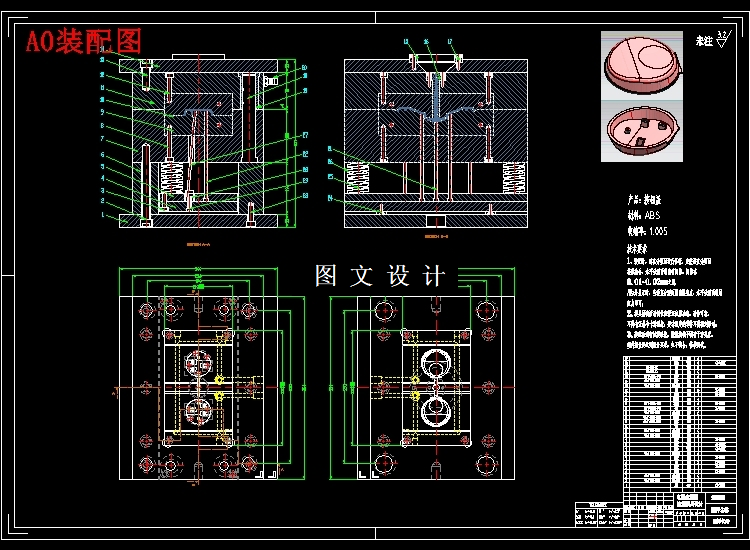 根据塑料制品的要求,了解塑件的用途,分析塑件的工艺性、尺寸精度等技术要求,选择塑件制件尺寸。本模具采用一模两件,侧浇口进料,注射机采用海天80XC型号,设置冷却系统,CAD和UG绘制二维总装图和零件图,选择模具合理的加工方法。附上说明书,系统地运用简要的文字,简明的示意图和和计算等分析塑件,从而作出合理的模具设计。 关键词:机械设计;模具设计;CAD绘制二维图;UG绘制3D图,注射机的选择