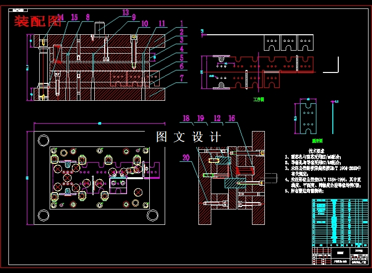 摘要 机械产品的连接板大部分是冲压制品,产品性能的提高要求高素质的冲压模具、冲压性能、成型工艺和冲压制品的设计。冷冲裁模,约占冲压成型总数的60%,主要用于金属制品的成型,它是冲压制品生产中十分重要的工艺装置。冲压成型的广泛应用,正是本设计的根本出发点。 本说明书来源于生产实际,主要任务是完成连接板的冲压模具设计和制造仿真。通过多种方案对比,本设计采用连续模结构,模具中设置了冲孔、倒角、落料等工位。设计中通过对连接板的材料、形状、尺寸及其精度的要求进行冲压工艺分析,结合工艺可行性分析,将零件展开,设计了排样图;根据工艺计算结果,对模具主要零部件,如凸、凹模和凸模固定板等进行详细设计,并设计了连接板的连续模。在设计中对模具的总体结构进行设计,包括上下模座、导柱导套、垫板、固定板、导料板、卸料板、卸料板弹钉等的设计与选用。利用Auto CAD2004软件制作了此连续模模具的装配图和零件图。