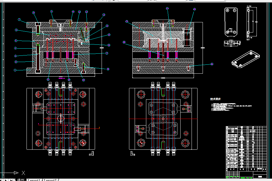 本论文以遥控器后盖的注塑模具设计为主要内容,详细介绍了注塑模具设计的一般流程,其中的设计内容有零件的工艺性编制:塑件的工艺性分析、塑件的体积和质量计算及注射机参数的确定;结构设计:分型面选择、型腔数确定、型腔的排列方式、浇口设计、侧向分型抽芯机构设计、推出及复位机构方式确定;型芯、型腔尺寸计算;模具加热和冷却系统计算;模具闭合高度确定;注射机有关参数的校核;如此设计出的结构可确保模具工作运用可靠。最后对模具结构与注射机的匹配进行了校核。并用AutoCad绘制了一套模具装配图和零件图。