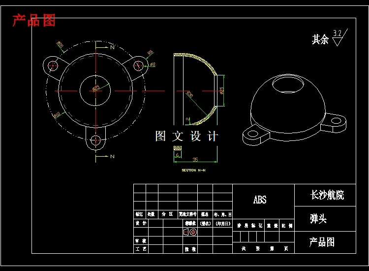 本文主要是关于弹头的注塑工艺的分析及模具设计。首先,对注塑工件进行了结构和工艺分析,确定了最佳成形方案;对整个塑件成形过程进行了模拟分析,预测了成形过程中可能出现的问题。根据分析结果,利用UG,完成了注塑模设计。 关键词:弹头;UG;注塑模