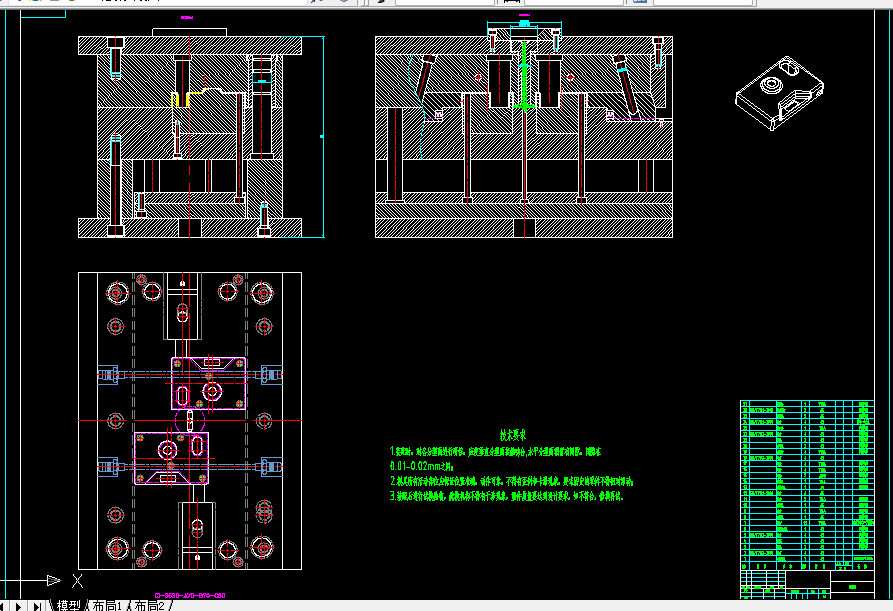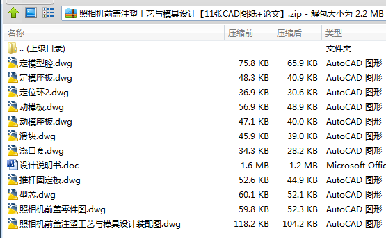 本次的毕业设计是照相机前盖的注塑模的设计,依据产品的数量和塑料的工艺性能确定为单分型面侧浇口。根据注塑的额定注塑量我们可以确定模具的型腔为一模2腔,排列方式为直线对称排列,制件有侧孔,无法直接脱模,所以我们需要设计侧抽芯机构,利用斜导柱带动滑块来完成侧孔的横向抽芯,最后当主流道余料全部被拉出后,再利用推杆推出机构完成塑件的推出。由于塑件比较大,所以需要设计冷却系统对制件进行局部冷却,防止制件发生翘曲变形。