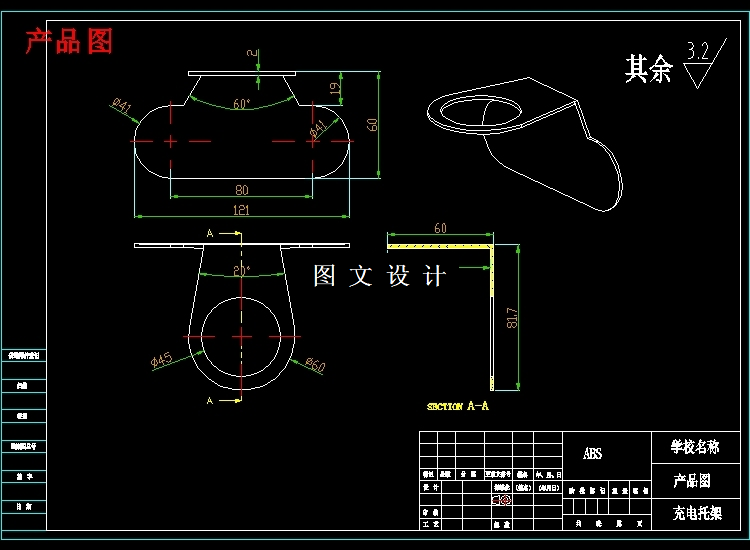 根据塑料制品的要求,了解塑件的用途,分析塑件的工艺性、尺寸精度等技术要求,选择塑件制件尺寸。本模具采用一模两腔,侧浇口进料,注射机采用海天160X2C型号,设置冷却系统,CAD和UG绘制二维总装图和零件图,选择模具合理的加工方法。附上说明书,系统地运用简要的文字,简明的示意图和和计算等分析塑件,从而作出合理的模具设计。 关键词:机械设计;模具设计;CAD绘制二维图;UG绘制3D图,注射机的选择