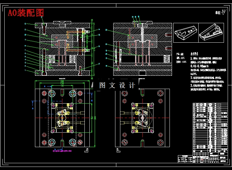 本设计为机械类塑料模注射模具设计,分析塑胶件的形状特点、尺寸大小、尺寸标注方法、精度要求 ,分析塑胶件的生产批量分析产品成本。确定成型方案及模具型式。 根据对塑胶零件的形状、尺寸、精度及表面质量要求的分析结果,确定所需的模塑成型方案:制品的后加工、分型面的选择、型腔的数目和排列、成型零件的结构、浇注系统等。 详细说明了塑料注射模具设计方法,以及各种参数的具体计算方法,如塑件的成型工艺,塑料脱模机构的设计。 关键词:成本,成型,塑料,注射模具,工艺,脱模