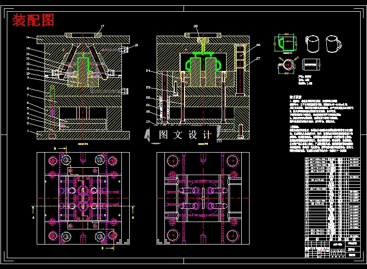 根据塑料制品的要求,了解塑件的用途,分析塑件的工艺性、尺寸精度等技术要求,选择塑件制件尺寸。本模具采用一模两腔,点浇口进料,注射机采用海天80X2A型号,设置冷却系统,CAD和UG绘制二维总装图和零件图,选择模具合理的加工方法。附上说明书,系统地运用简要的文字,简明的示意图和和计算等分析塑件,从而作出合理的模具设计。 关键词:机械设计;模具设计;CAD绘制二维图;UG绘制3D图,注射机的选择